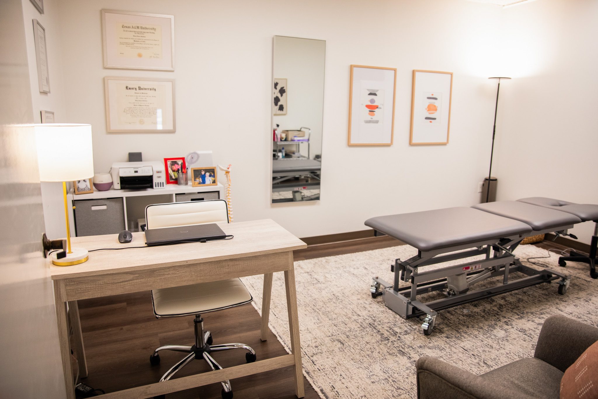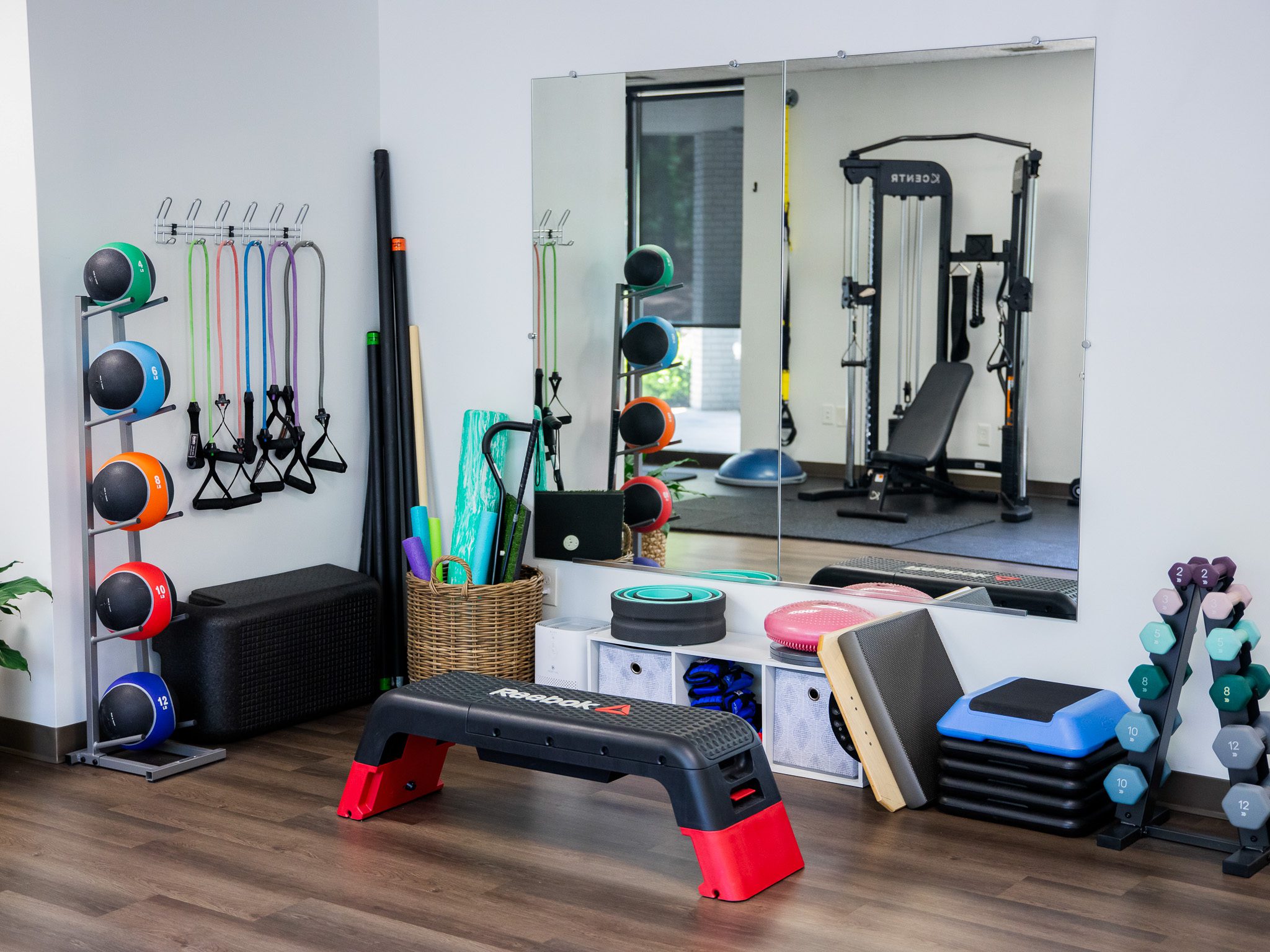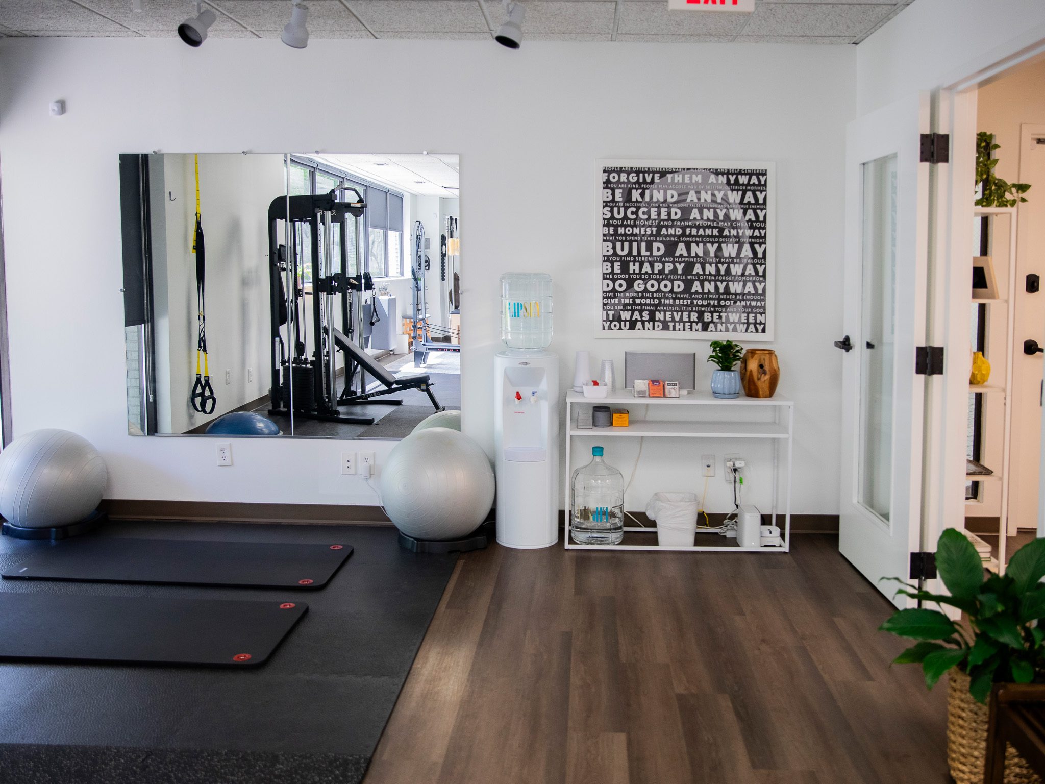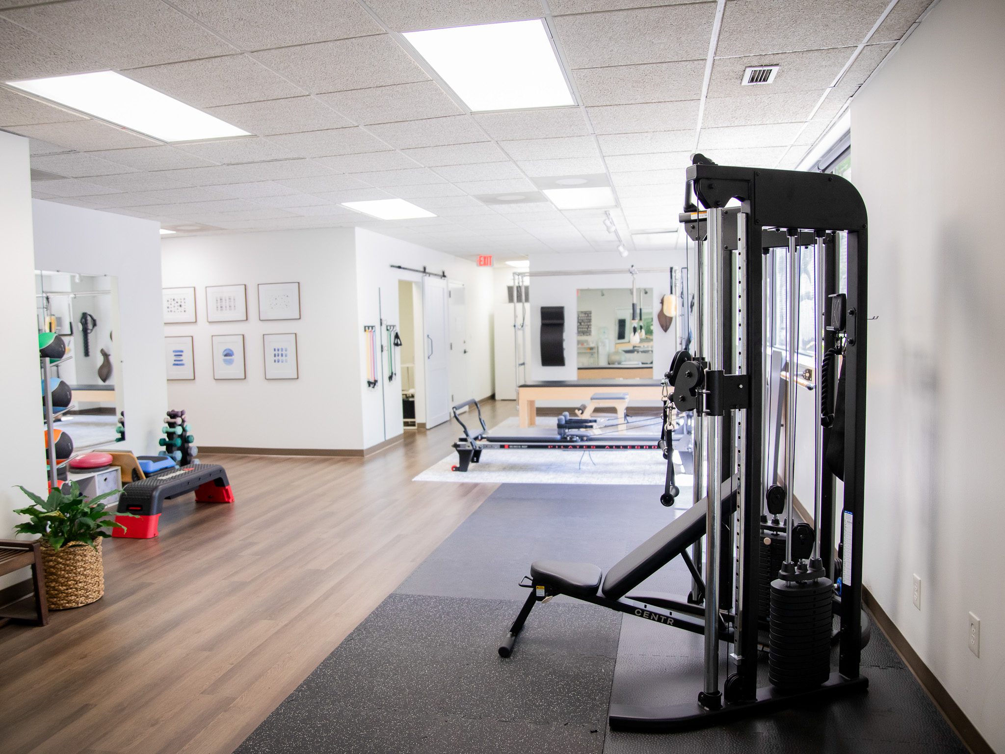 The Atlanta location is located near SunTrust Park and is conveniently located by I-285 and I-75 interstates. Parking is located outside of the building, and the office is located on the first floor of the building at the corner of Lake Park Drive and Village Parkway. Physical therapy sessions are scheduled in a private treatment room, and there is a gym, with equipment including a free motion machine and functional training equipment, that is conducive for individual sessions. There is a separate room for private Pilates sessions utilizing Balanced Body Pilates equipment, including a reformer, tower bar, and chair.
